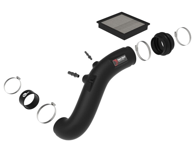 This filter features three layers of oil-free synthetic media and requires no oil during maintenance to provide maximum convenience. Its progressive layering provides great filtration efficiency and dust holding capacity. This media is best suited for street use. Pro DRY S filters are easily recharged with aFe's POWER CLEANER. This system features a high quality, computer-designed, dyno-tuned intake tube to achieve maximum power gains while maintaining a perfect fit. Its XLPE material is heat soak resistant and extremely durable. Stainless-steel clamps and silicone couplings are used for strength and durability.