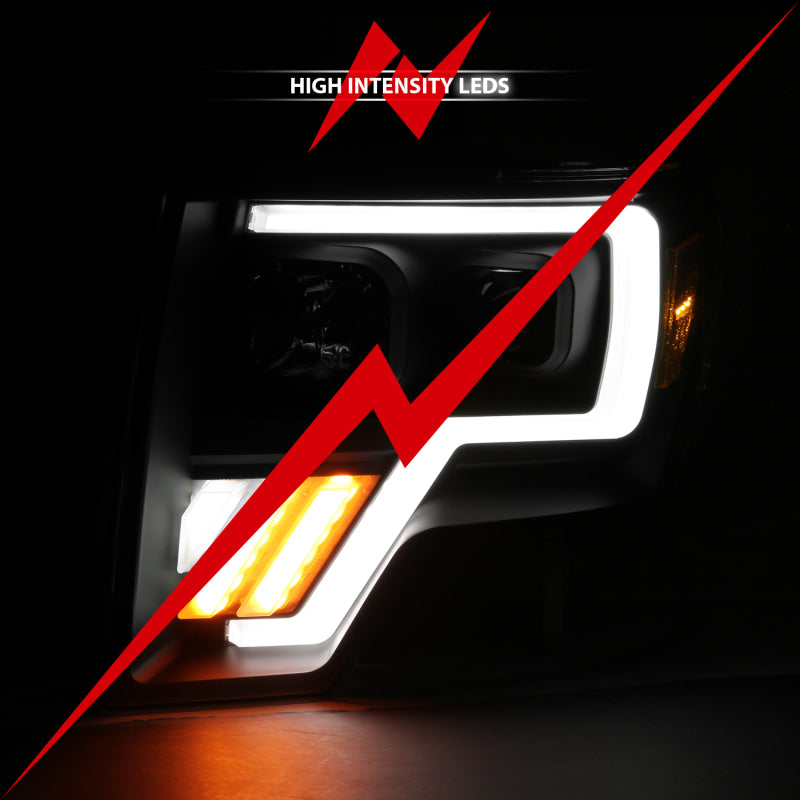 ANZO 2009-2013 Ford F-150 Projector Light Bar G4 Switchback Headlights Black Amber