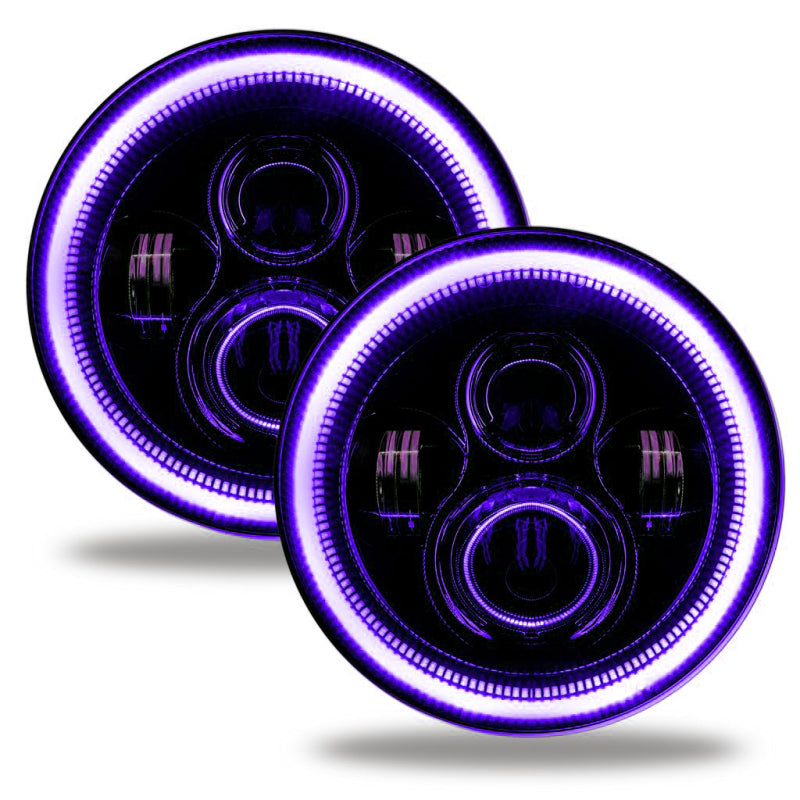 Complete Package for adding High-Performance 7" LED Headlights to your Wrangler JL/Gladiator JT without any fabrication or cutting your factory wiring. This complete Plug-&-Play kit also features Vertical and Horizontal headlight adjustment so you can put the light on the road (where you need it) and not blind oncoming traffic. The Ultimate 7" LED replacement headlight option for the Wrangler JL/Gladiator JT. This rugged solid-state LED design is perfect for the Jeep owner looking for high-quality lighting for better night time visibility without overpaying. Installation is very easy with the included JL/JT-specific “Plug and Play” connectors. You can even choose optional colored Halos for even more customization! Note: DRL wire cannot be used as a power source - Tapping into Park Lights will give manual control over LED accessory during daytime driving - LED accessory will turn on automatically in night mode when switch is set to AUTO - For full automatic control over the LED accessory use fuse F52 in the engine compartment fuse panel. The new ORACLE Lighting Dynamic ColorSHIFT Halos feature individually addressable LEDs which pack a ton of unique features.. The Dynamic features allow the user to run multiple moving color patterns through the LEDs, creating a vivid eye-catching lighting effect.Through the App you can easily make standard white colors as well as any static colors using the LED color wheel. What makes these DYNAMIC halos more unique is that you can also display a variety of moving patterns within the app. With over 200 different patterns there is something to fit every color scheme you can imagine!