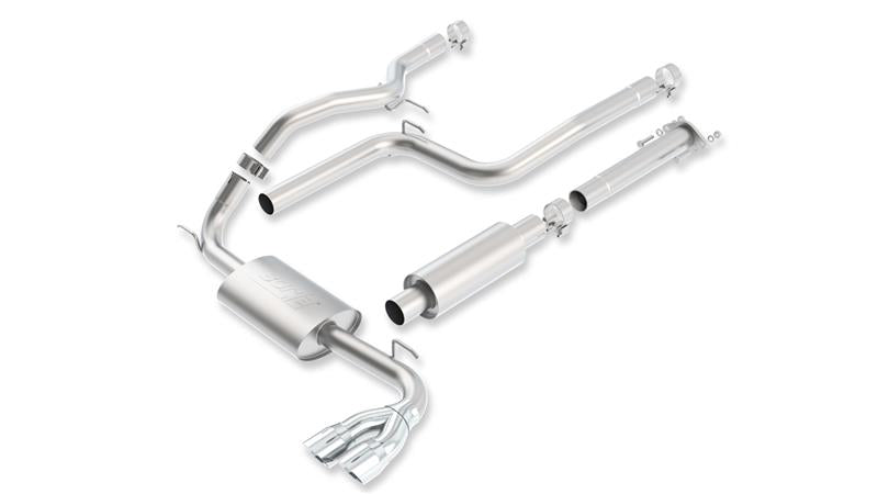 The BORLA® sound of power. Its been described as asonic shot of adrenaline. An intoxicating concert ofsteel, gears and combustion that echoes from thespeedways, deserts and highways of the world.The sound of more victory laps than any otherbrand, the BORLA® exhaust note has become the quintessentioal soundtrack of high-performance motoring. And like all good automotive designs there is function behing the form. As any driving enthusiast knows, the sound of an exhaust provides more than just ear candy. Its a communications conduit between car and driver. A link between human and machine. The exhaust sound provides accoustic feedback of engine rpm to aid the driver in critical decisions such as gear selection or throttle input in rev-match shifting. At BORLA®, we understand this concept better than any exhaust manufacturer. Combining patented technology with computer modeling, extensive prototyping and advanced sound analysis tools. BORLA® engineers spend countless hours tuning exhaust systems to best reflect the personality and performance of vehicle applications. The result is an enhanced driving experience. With unrivaled clarity, the BORLA® exhaust note can help a driver stay within the powerband through a difficult section, using the exciting sensory feedback of sound. With unrivaled clarity the Borla exhaust note can help a driver stay within the powerband through a difficult section, using the exciting sensry feedback of sound.