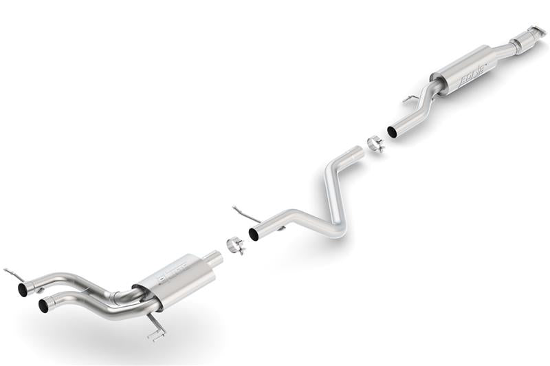 Borla Cat-Back and Rear Section exhaust systems feature patented straight through and multi-core technology to unleash hidden horsepower. Increased exhaust velocity adds power; driving excitement; fuel economy; and the distinctive Borla Sound of power respected enthusiasts everywhere. Each system is built from premium 300 series austenitic stainless steel; superior to T-400 series knockoffs; to give you the absolute best in performance and durability. Ultra smooth mandrel bends ensure maximum flow and power; and precision computer controlled CNC manufacturing ensures an accurate fit. Best of all Borla stands behind every system with a Million-Mile Warranty. Just what you would expect from the worlds most experienced and most winning exhaust brad.