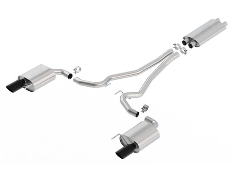 EC-Type approved systems are those that comply with European Union rules for motor vehicles, vehicle systems and components. Front muffler/ resonator contains an internal H-Pipe for increased performance and improved performance. This system comes with 4" bright chrome on T-304 stainless steel tips. Borla(r) Cat-Back(tm) & Axle-Back exhaust systems feature patented straight-through and multi-core technology to unleash hidden horsepower. Increased exhaust velocity adds power, driving excitement, fuel economy, and the distinctive Borla(r) Sound of Power respected by motoring enthusiasts everywhere. Each system is built from premium T-304 austenitic stainless steel, superior to T-400 series knockoffs (such as 409), to give you the absolute best in performance and durability. Ultra-smooth mandrel bends ensure maximum flow & power, and precision computer numerical control (CNC) manufacturing ensures an accurate fit. Best of all, Borla(r) stands behind every system with a Million-Mile in the USA and Canada (1.6 million kilometer). Products sold outside of the USA and Canada carry a 3-year limited warranty. Just what you'd expect from the world's most experienced (and most winning) exhaust brand.