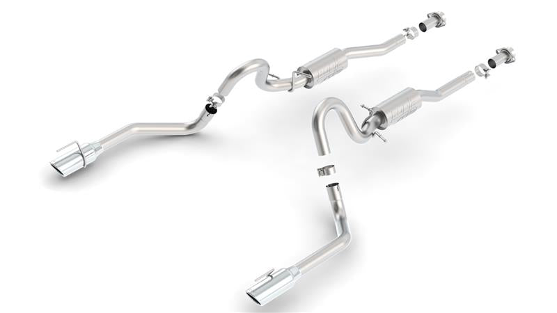 For over 4 decades, BORLA® Exhaust has been the choice of Mustang experts, from the Cobra-R SVT Mustang to the Ford GT. Major players in the racing industry and leading tuners from Roush, Steeda, Saleen and Ford Racing to the Shelby 427 Cobra have relied on BORLA®. BORLA®'S experience and advance engineering produced the aggressive ATAK® exhaust with outstanding flow numbers that generates great power enhancements. These attributes, coupled with an aggressive sound of power and single 4" round bright chrome on T-304 stainless steel tips on each tail pipe, proclaim this 2.5" Cat-Back™ system is all business. Airflow management and exhaust engineering is a science with which BORLA® has more experience than anyone in the exhaust aftermarket. The performance matches the famous BORLA® systems of the past but with a unique muffler and exhaust configuration canceling additional high frequency sound waves delivering a significant increase in exhaust flow CFM from the factory system which, as most engine builders will confirm, accounts for the dramatic power improvements. Perhaps more importantly, this added flow maximizes performance for other aftermarket enhancements installed on the Mustang because all BORLA® exhaust products are tuned for maximum output from any aftermarket performance upgrade. BORLA, the original pioneers of aerospace-grade T-304 stainless steel (superior to 409 or aluminized steel) free-flow exhaust utilizes patented award and race winning technology to deliver quality, sound, performance gains and enhanced fuel economy – all with an easy bolt-on installation. Best of all, each system comes with the unsurpassed BORLA® Million-Mile Warranty.