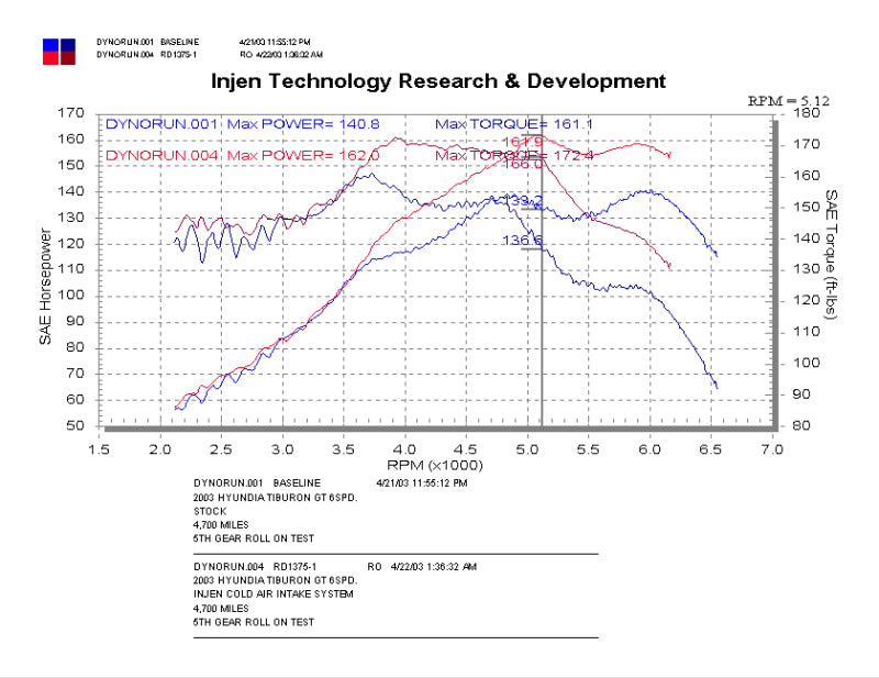 Add some easy horsepower to your Ride with this RD Series Performance cold air intake (CAI) from Injen Technology! The engineers at Injen have spent considerable amounts of time designing, testing, and perfecting this CAI to produce some serious bolt-on power while also providing amazing engine bay aesthetics. In addition to the impressive power increase, the Injen team has ensured that safe Air fuel (A/F) ratios are maintained throughout the powerband. , , The soul of this intake is found within our mandrel-bent 6061-T6 aluminum air intake tube that provides a smooth uninterrupted path for highly efficient airflow. This tube reaches into the depths of the engine bay to collect the coolest and densest air available. Additionally, this RD intake also includes a fully serviceable Injen SuperNano-Web dry air filter, which provides increased filter surface area allowing for greater airflow and unbeatable filtration. If that's not enough, the Injen RD performance intake provides power you can hear and feel! This intake provides an aggressive and throaty tone that is unmatched in the aftermarket. Want to add that personalized touch to your intake? Injen also offers this intake system in a polished or a powder-coated Black finish. To top it all off, this RD CAI kit includes the unbeatable Injen Technology limited Lifetime Warranty!,