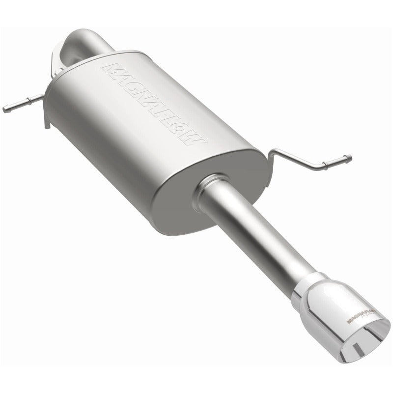 The MagnaFlow 2011-2014 Mazda 2 Street Series Axle-Back Performance Exhaust System 15555 brings enhanced engine sound and dyno-proven performance to your 1.5L 2011-2014 Mazda 2 with a healthy helping of our deep, resonant signature exhaust note at Moderate exterior and Mild interior sound levels. Thanks to its durable, corrosion resistant stainless steel design, this Mazda 2 exhaust system will handle whatever tarmac you decide to leave your mark on. This performance exhaust kit features an axle-back layout designed to replace your Mazda 2's exhaust system from near the rear axle on back. With its fast-flowing, mandrel bent 2.25in. main piping and 1 Straight-Through mufflers ending in a Single Straight Passenger Side Rear exit with 3.5in. Polished Welded-On Double Wall Angle Cut Folded Edge tips, your ride will be sounding as awesome as it looks. Extensive 3D scanning during development has resulted in a direct-fit design that you can easily install yourself. 15555 is produced using CNC precision robotic manufacturing techniques and is backed by MagnaFlow's 1-year limited finish warranty and limited lifetime construction warranty.