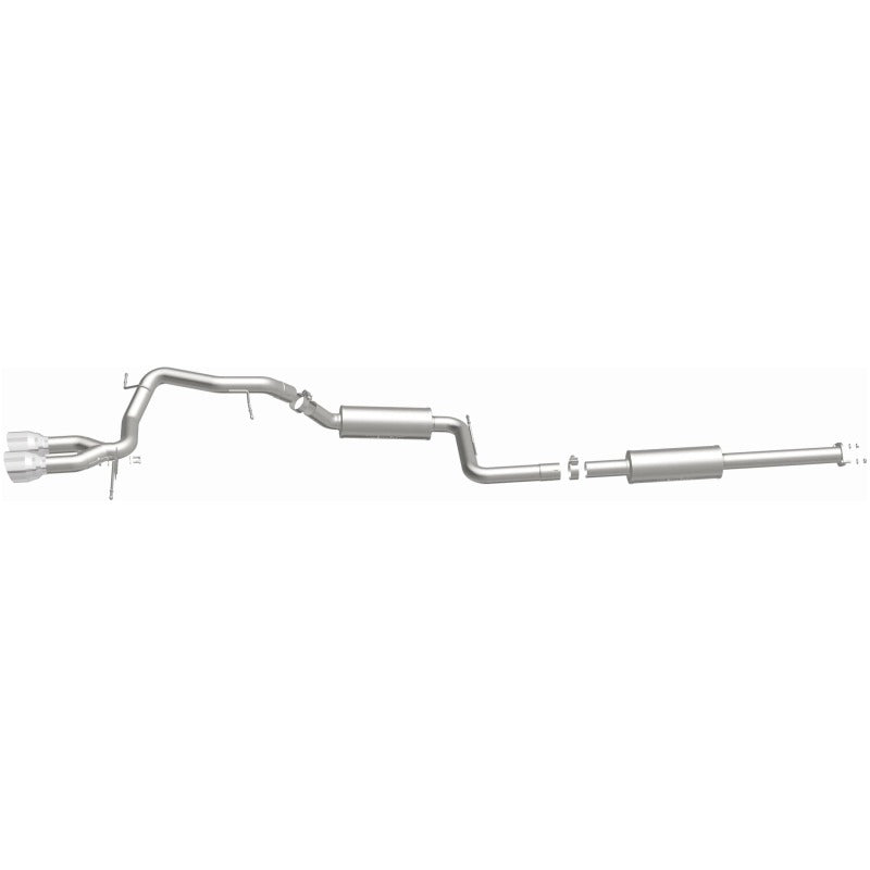 The MagnaFlow 2013-2018 Ford Focus Street Series Cat-Back Performance Exhaust System 15155 brings out the personality of your 2.0L 2013-2018 Ford Focus with our signature resonant, powerful engine tone and dyno-proven performance. Thanks to its fast-flowing, mandrel bent 2.5in. main piping and 2 Straight-Through mufflers ending in a Dual Center Rear exit with 4.5in. Polished Welded-On Double Wall Angle Cut Rolled Edge tips, this Ford Focus exhaust kit has the performance chops to match its sporty sound and appearance. Upgrade your ride to the next level with an exhaust that has the pipes to put other Ford Focus's to shame. With this system your vehicle will be producing Moderate exterior and Mild interior sound levels while leaving other cars and trucks feeling envious at every stoplight. Exhaust kit 15155 features a cat-back layout that replaces your ride's stock exhaust components from near the catalytic converter on back. Extensive 3D scanning during development has resulted in a direct-fit design that you can easily install yourself. 15155 is produced using CNC precision robotic manufacturing techniques and is backed by MagnaFlow's 1-year limited finish warranty and limited lifetime construction warranty.