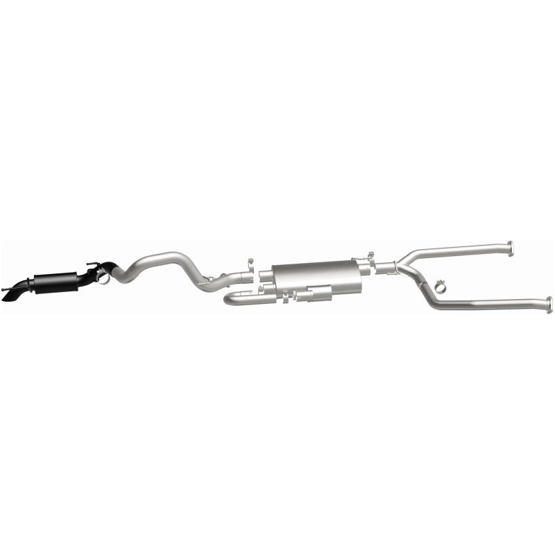 The MagnaFlow Toyota Sequoia Overland Series Cat-Back Performance Exhaust System #19625 offers the improved off-road capabilities, higher ground clearance, dyno-proven performance and signature MagnaFlow sound necessary to turn your 2023-2024 Toyota Sequoia into the ultimate overlanding vehicle. #19625’s direct-fit design is easy to install and replaces your SUV’s stock exhaust components from near the catalytic converter on back. This Toyota Sequoia exhaust system features 3” mandrel bent main piping that passes through a 22” oval bodied muffler and 11” round bodied muffler in addition to an NDT (No Drone Technology) reflection chamber before ending in a high clearance, tucked black-coated tailpipe to the rear of the driver’s side. The integration of MagnaFlow’s NDT technology means that droning noises at highway cruising speeds are kept to a minimum. One of the system’s mufflers features an accessory port, where various included modules can be attached to further augment your rig’s engine sound. An additional NDT resonator module can be attached for further droning reduction in various frequency ranges, or the port can be covered with the included pipe cap for a more traditional MagnaFlow exhaust sound. Together with the included J-pipe module, these attachments can be combined in various configurations to tune out a variety of different droning frequencies. The high clearance nature of the design and tucked exit of this system means both improved ground clearance and departure angles for superior off-road performance. This performance exhaust kit is made of durable, corrosion resistant stainless steel and produced using advanced CNC precision robotic manufacturing techniques, all backed by MagnaFlow’s limited lifetime warranty.