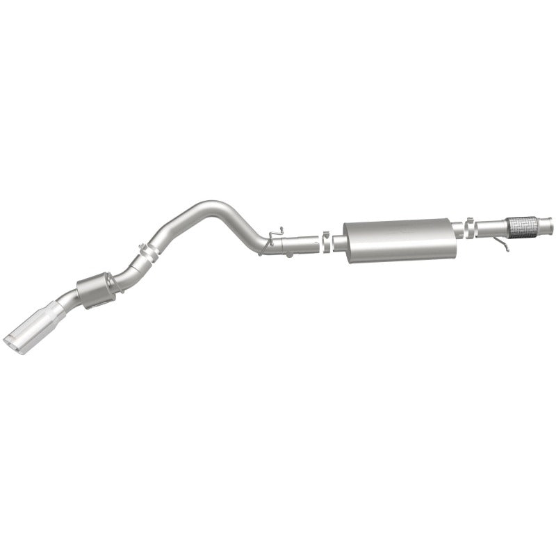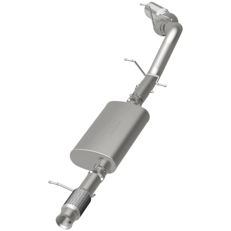 The MagnaFlow Street Series Cat-Back Performance Exhaust System 19177 brings out the personality of your SUV with our signature resonant, powerful engine tone and dyno-proven performance. Thanks to its fast-flowing, mandrel bent 3.5in. main piping and 2 Straight-Through mufflers ending in a Single Passenger Side Rear exit with 5in. Polished Welded-On Double Wall Angle Cut Rolled Edge tips, this SUV exhaust kit has the performance chops to match its sporty sound and appearance. Upgrade your ride to the next level with an exhaust that has the pipes to put other SUV's to shame. With this system your vehicle will be producing Moderate exterior and Mild interior sound levels while leaving other cars and trucks feeling envious at every stoplight. Exhaust kit 19177 features a cat-back layout that replaces your ride's stock exhaust components from near the catalytic converter on back. Extensive 3D scanning during development has resulted in a direct-fit design that you can easily install yourself. 19177 is produced using CNC precision robotic manufacturing techniques and is backed by MagnaFlow's 1-year limited finish warranty and limited lifetime construction warranty.