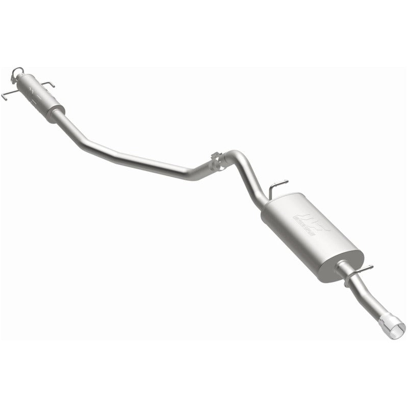 The MagnaFlow 2003-2006 Toyota Corolla Street Series Cat-Back Performance Exhaust System 15807 brings out the personality of your 1.8L 2003-2006 Toyota Corolla with our signature resonant, powerful engine tone and dyno-proven performance. Thanks to its fast-flowing, mandrel bent 2.25in. main piping and 2 Straight-Through mufflers ending in a Single Straight Passenger Side Rear exit with 3in. Polished Welded-On Single Wall Straight Cut Rolled Edge tips, this Toyota Corolla exhaust kit has the performance chops to match its sporty sound and appearance. Upgrade your ride to the next level with an exhaust that has the pipes to put other Toyota Corolla's to shame. With this system your vehicle will be producing Moderate exterior and Mild interior sound levels while leaving other cars and trucks feeling envious at every stoplight. Exhaust kit 15807 features a cat-back layout that replaces your ride's stock exhaust components from near the catalytic converter on back. Extensive 3D scanning during development has resulted in a direct-fit design that you can easily install yourself. 15807 is produced using CNC precision robotic manufacturing techniques and is backed by MagnaFlow's 1-year limited finish warranty and limited lifetime construction warranty.