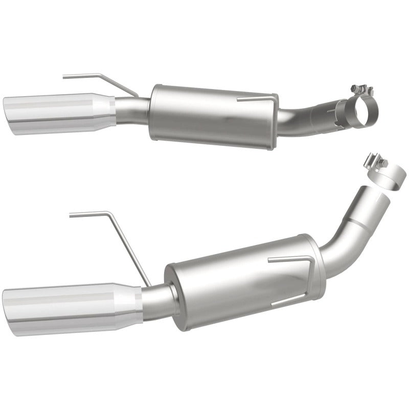 The MagnaFlow 2005-2009 Ford Mustang Competition Series Axle-Back Performance Exhaust System 16793 brings an aggressive, attention-grabbing edge to the deep resonant exhaust note we're so well known for. This exhaust kit is designed to enhance your 4.6L, 5.4L 2005-2009 Ford Mustang with dyno-proven performance made possible thanks to fast-flowing mandrel bent 2.5in. main piping and 2 Straight-Through mufflers ending in a Dual Split Rear exit with 3.5in. Polished Welded-On Double Wall Angle Cut Rolled Edge tips featuring a sporty finish. The exhaust system's axle-back layout replaces your ride's exhaust system from near the rear axle on back. Exhaust system 16793 is engineered to make your vehicle's engine produce Aggressive exterior and Moderate interior sound levels, befitting its competition-oriented design. 16793's direct-fit design makes installation a breeze thanks to the use of advanced 3D scanning techniques. This performance exhaust system is made of 100% durable and corrosion-resistant stainless steel and produced using CNC precision robotic manufacturing, all backed by MagnaFlow's limited lifetime warranty. Please check to ensure compliance with local noise regulations.