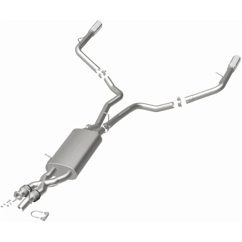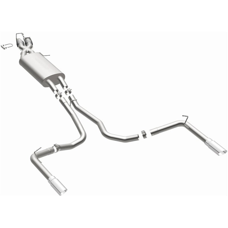The MagnaFlow 2010-2013 Land Rover Range Rover Sport Touring Series Cat-Back Performance Exhaust System 15579 is the perfect partner for your 5.0L 2010-2013 Land Rover Range Rover Sport to take on a grand tour or a weekend cruise thanks to the powerful, resonant exhaust note and dyno-proven performance it brings to the table. This durable, corrosion resistant stainless steel exhaust kit is engineered to conquer the miles with ease while enhancing your driving experience with Moderate exterior and Mild interior sound levels generated through its fast-flowing, mandrel bent 2.5in. main piping and 1 Straight-Through muffler that terminate in a Dual Split Rear exit with 3.5in. Polished Welded-On Double Wall Angle Cut Folded Edge tips. 15579 features a cat-back layout design to replace your import's stock exhaust components from the catalytic converter on back. This Land Rover Range Rover Sport exhaust system is compatible with 2010-2013 engines. The use of extensive 3D scans made during the development process has resulted in an easy-to-install, direct-fit design that fits your Land Rover Range Rover Sport like a glove. 15579 is produced using CNC precision robotic manufacturing techniques and is backed by MagnaFlow's limited lifetime construction warranty.