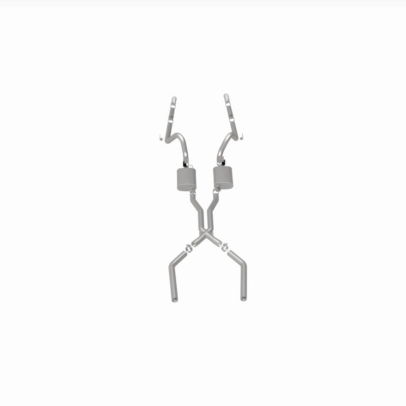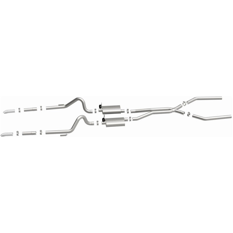 The MagnaFlow 1964-1966 Ford Mustang Street Series Crossmember-Back Performance Exhaust System 15815 brings enhanced engine sound and dyno-proven performance to your 2.8L, 3.3L, 4.3L, 4.7L 1964-1966 Ford Mustang with a healthy helping of our deep, resonant signature exhaust note at Moderate exterior and Mild interior sound levels. Thanks to its durable, corrosion resistant stainless steel design, this Ford Mustang exhaust system will handle whatever tarmac you decide to leave your mark on. This performance exhaust kit features a crossmember-back layout designed to replace your Ford Mustang's exhaust system from the crossmember on back. With its fast-flowing, mandrel bent 2.5in. main piping and 2 Straight-Through mufflers ending in a Dual Split Rear exit with 2.75in. Polished Welded-On Single Wall Turndown Cut Edge tips, your muscle car will be sounding as awesome as it looks. Extensive 3D scanning during development has resulted in a direct-fit design that you can easily install yourself. 15815 is produced using CNC precision robotic manufacturing techniques and is backed by MagnaFlow's limited lifetime construction warranty.