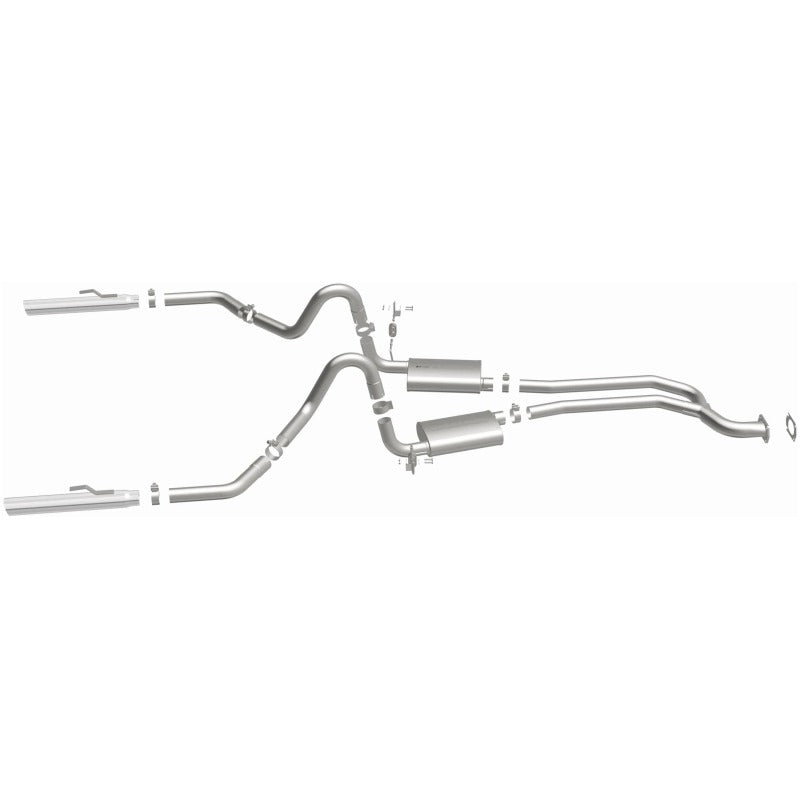 The MagnaFlow 1983-1988 Chevrolet Monte Carlo Street Series Cat-Back Performance Exhaust System 15147 brings out the personality of your 5.0L 1983-1988 Chevrolet Monte Carlo with our signature resonant, powerful engine tone and dyno-proven performance. Thanks to its fast-flowing, mandrel bent 3in. main piping and 2 Straight-Through mufflers ending in a Dual Split Rear exit with 3in. Polished Clamp-On Single Wall Angle Cut Cut Edge tips, this Chevrolet Monte Carlo exhaust kit has the performance chops to match its sporty sound and appearance. Upgrade your ride to the next level with an exhaust that has the pipes to put other Chevrolet Monte Carlo's to shame. With this system your vehicle will be producing Moderate exterior and Mild interior sound levels while leaving other cars and trucks feeling envious at every stoplight. Exhaust kit 15147 features a cat-back layout that replaces your ride's stock exhaust components from near the catalytic converter on back. Extensive 3D scanning during development has resulted in a direct-fit design that you can easily install yourself. 15147 is produced using CNC precision robotic manufacturing techniques and is backed by MagnaFlow's 1-year limited finish warranty and limited lifetime construction warranty.