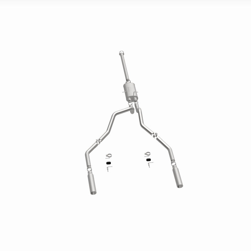 The MagnaFlow Street Series Cat-Back Performance Exhaust System 15749 brings out the personality of your 4.6L, 5.4L 1997-2004 Ford with our signature resonant, powerful engine tone and dyno-proven performance. Thanks to its fast-flowing, mandrel bent 2.5in. main piping and 1 Straight-Through mufflers ending in a Dual Split Rear exit with 3.5in. Polished Clamp-On Single Wall Angle Cut Rolled Edge tips, this Ford exhaust kit has the performance chops to match its sporty sound and appearance. Upgrade your ride to the next level with an exhaust that has the pipes to put other Ford's to shame. With this system your vehicle will be producing Aggressive exterior and Moderate interior sound levels while leaving other cars and trucks feeling envious at every stoplight. Exhaust kit 15749 features a cat-back layout that replaces your ride's stock exhaust components from near the catalytic converter on back. Extensive 3D scanning during development has resulted in a direct-fit design that you can easily install yourself. 15749 is produced using CNC precision robotic manufacturing techniques and is backed by MagnaFlow's 1-year limited finish warranty and limited lifetime construction warranty.