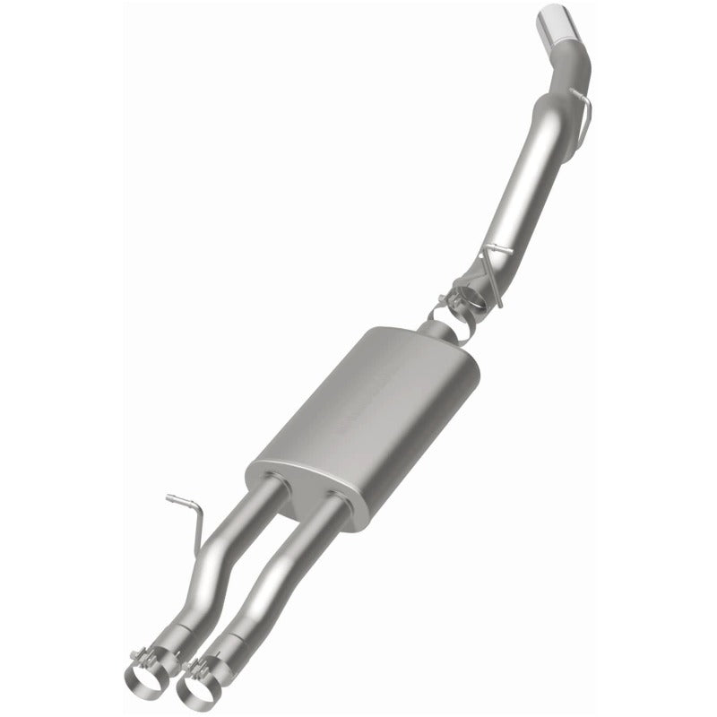 The MagnaFlow Street Series Cat-Back Performance Exhaust System 15732 brings out the personality of your Truck with our signature resonant, powerful engine tone and dyno-proven performance. Thanks to its fast-flowing, mandrel bent 4in. main piping and 1 Straight-Through mufflers ending in a Single Passenger Side Rear exit with 4in. Polished Welded-On Single Wall Angle Cut Rolled Edge tips, this Truck exhaust kit has the performance chops to match its sporty sound and appearance. Upgrade your ride to the next level with an exhaust that has the pipes to put other Truck's to shame. With this system your vehicle will be producing Moderate exterior and Mild interior sound levels while leaving other cars and trucks feeling envious at every stoplight. Exhaust kit 15732 features a cat-back layout that replaces your ride's stock exhaust components from near the catalytic converter on back. Extensive 3D scanning during development has resulted in a direct-fit design that you can easily install yourself. 15732 is produced using CNC precision robotic manufacturing techniques and is backed by MagnaFlow's 1-year limited finish warranty and limited lifetime construction warranty.