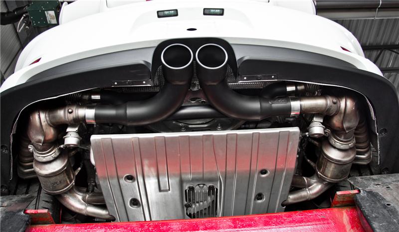 MBRP 14-19 Porsche GT3/GT3RS 3in Center Muffler Bypass 4in Tips - Black Coated